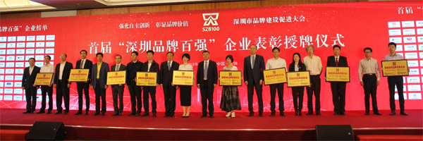 深圳品牌百強榮譽牌匾